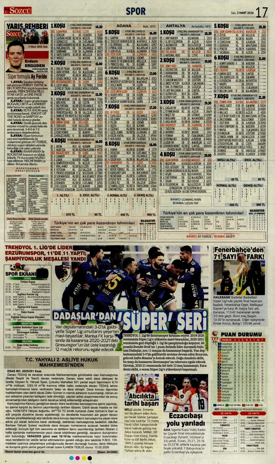 Aslan'ın gurur tablosu! Spor basını bugün ne yazdı? (3 Mart)