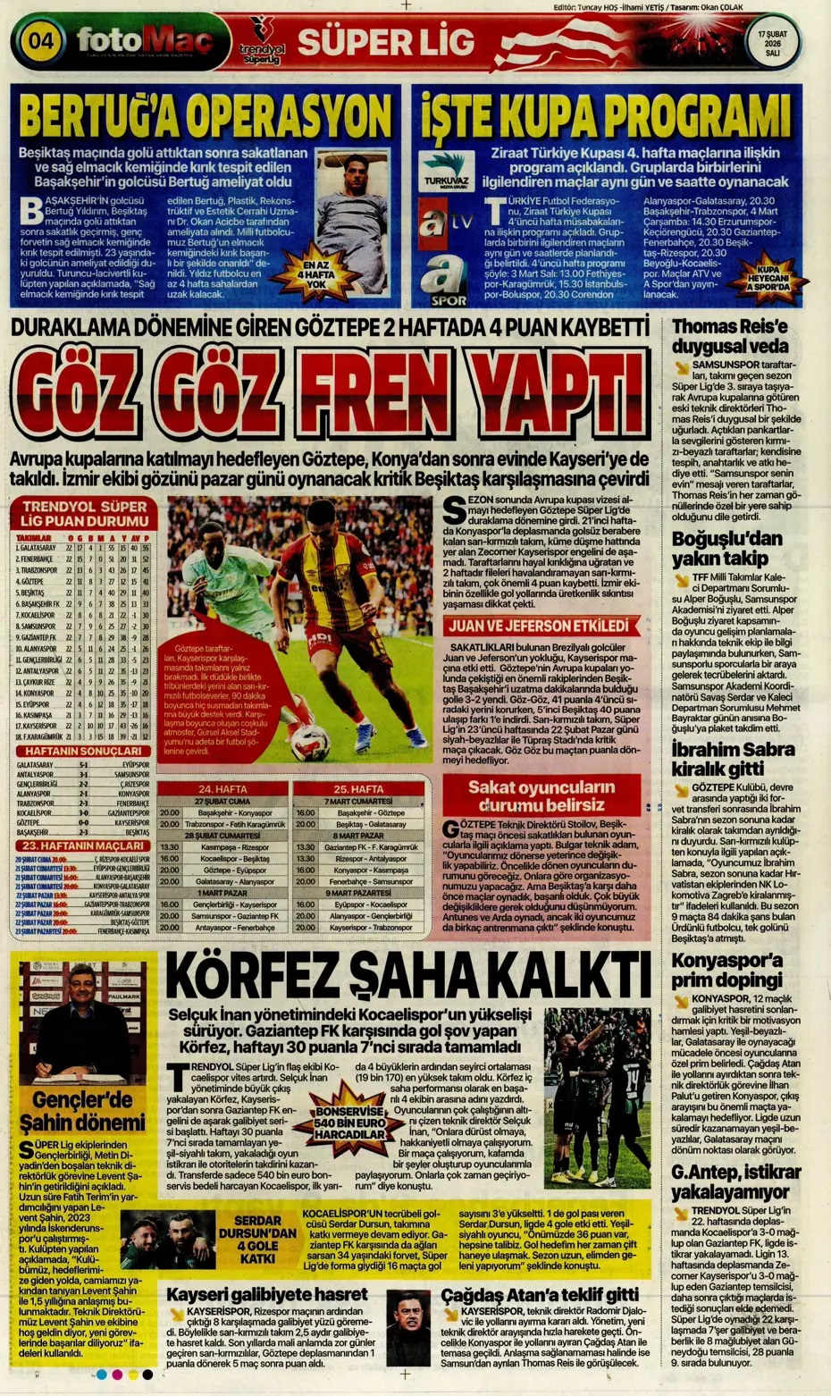 Bekle beni İtalya! Spor basını bugün ne yazdı? (17 Şubat)