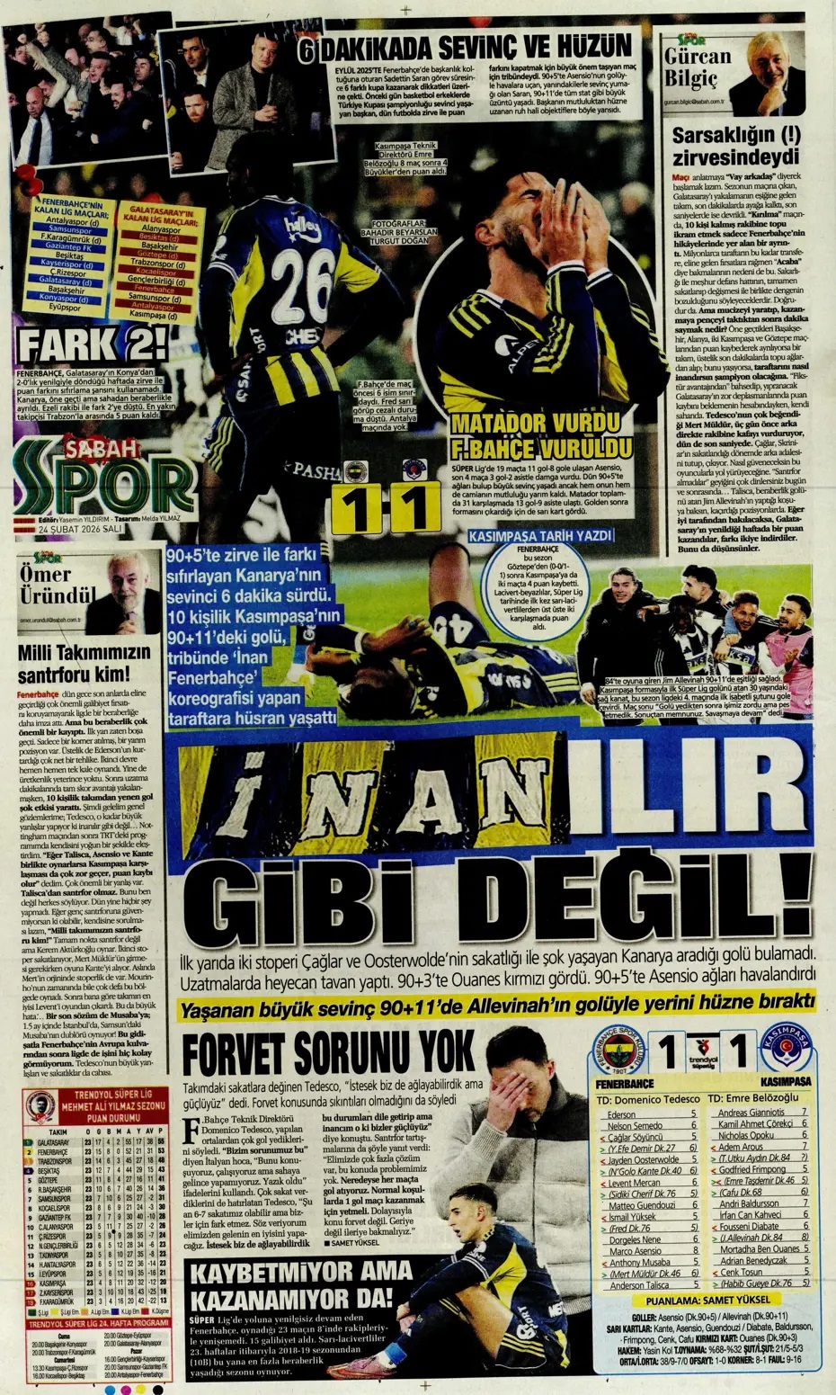 Devlerin sonu! Spor basını bugün ne yazdı? (24 Şubat)