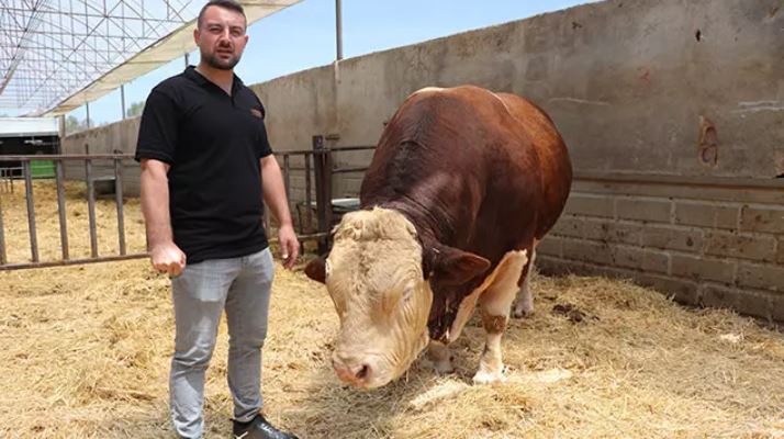 Kurban Bayramı'na sayılı günler kala, kentte yurt içi ve yurt dışına büyükbaş satan Salim Asıl, çiftliğindeki "Poyraz" isimli yaklaşık 1,5 ton ağırlığındaki boğasını satışa çıkardı.