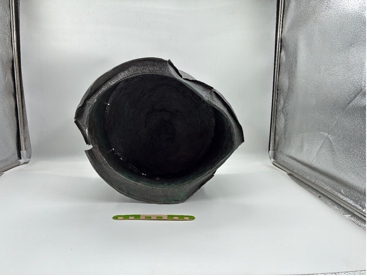 Açıklamada, bronz kabın iyi korunduğu konservasyon ve restorasyon çalışmaları sonucunda yüzeyinde yer alan çekiç izlerinin net şekilde gözlemlendiği vurgulandı.