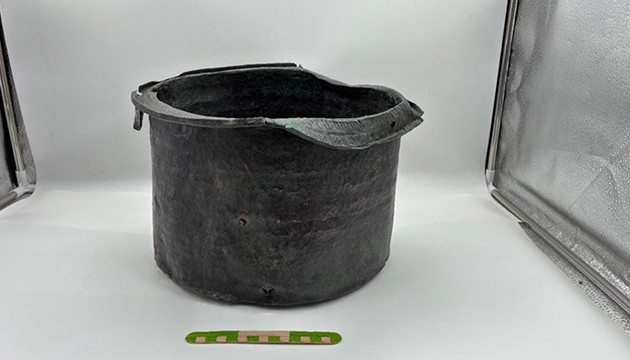 Üst kısmında çizgisel motiflerin bulunduğu kazanın, Roma dönemine ait 1400 yıllık olduğu değerlendiriliyor.