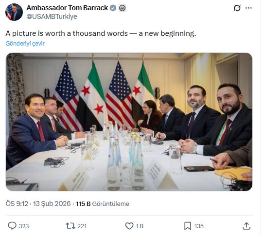 Görüşmenin ardından ABD’nin Suriye Özel Temsilcisi Tom Barrack, zirveden çekilen bir fotoğrafı paylaşarak, "Bir resim bin kelimeye bedeldir; yeni bir başlangıç" mesajını yayımladı.