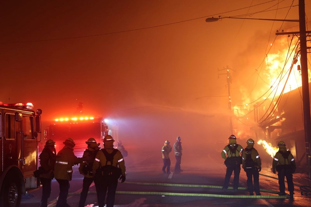 Güney Kaliforniya'da devam eden çok sayıda orman yangını sürmeye devam ediyor. Los Angeles'ın batısındaki Palisades Yangını, Pasadena'nın kuzeyindeki Eaton Yangını ve Hollywood Tepelerindeki Sunset Yangını da dahil olmak üzere çok sayıda büyük yangın var.