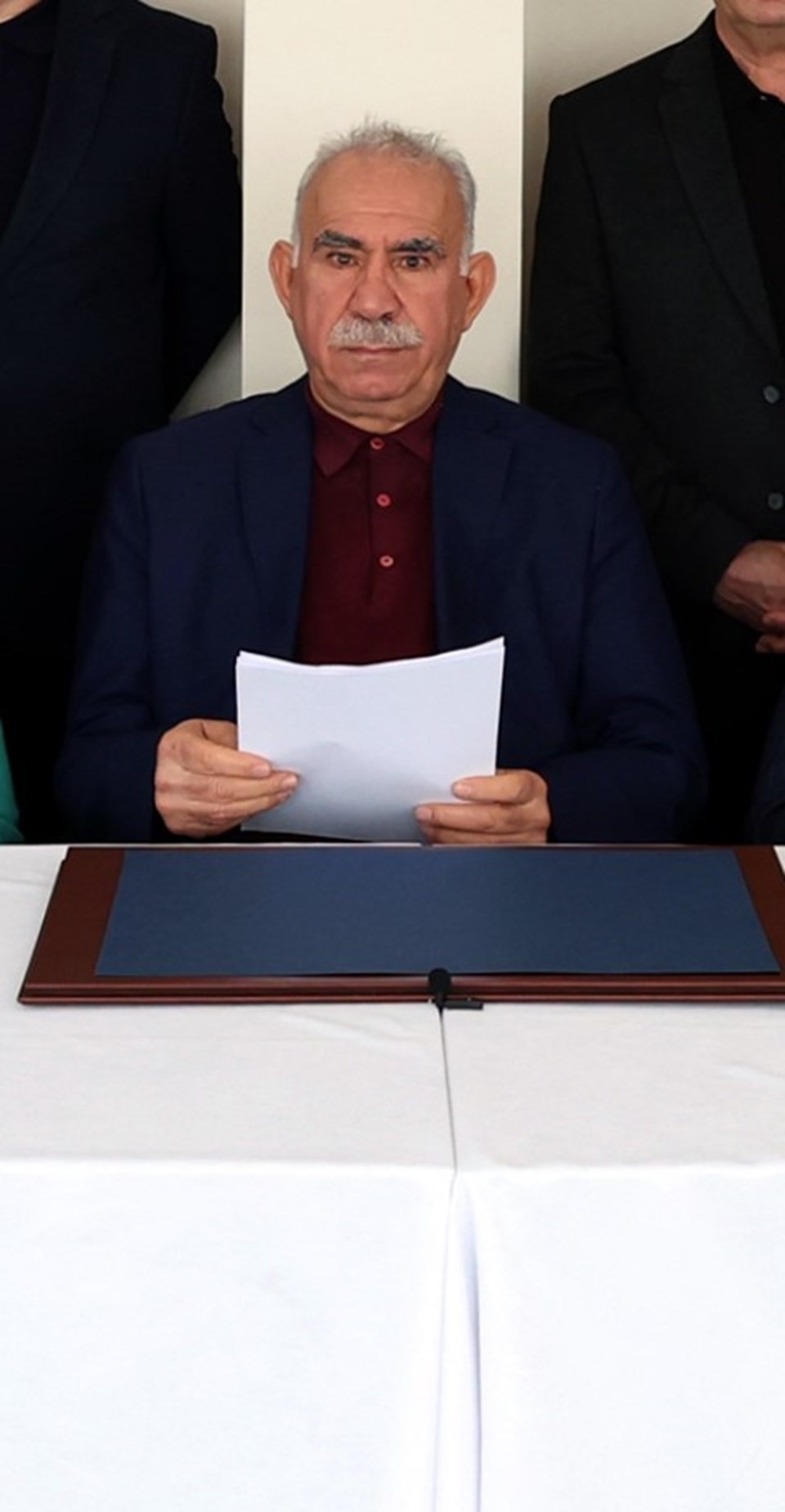 Öcalan’ın arkasında, İmralı Adası’nda tutuklu bulunan diğer mahkumların da yer aldığı görüldü.
