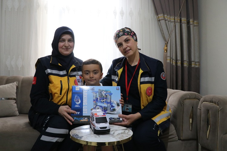 Ekip, 4 yıl sonra Kayseri İl Sağlık Müdürlüğünce üzerinde ambulans figürü ve Ubeyde'nin isminin yazılı olduğu yaş pastayı yaptırarak, aileyi ziyaret etti.