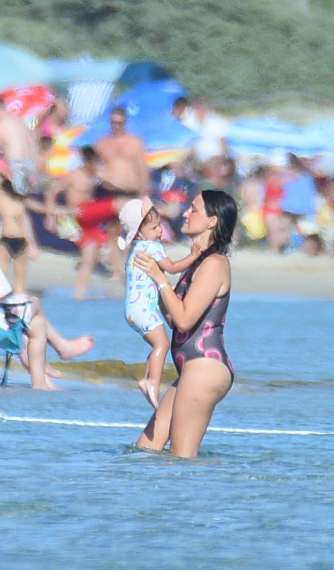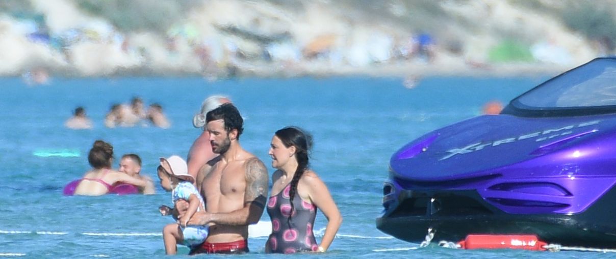 Kızlarını kucaklarından indirmeyen ünlü çift, birlikte denizin ve güneşin keyfini çıkardı. Vatandaşlar ünlü çifte plajda yoğun ilgi gösterdi.
