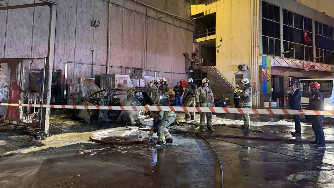 İstanbul'da akaryakıt istasyonunda şarj halindeki elektrikli otomobilde patlama meydana geldi. Patlamanın ardından otomobil alev alev yandı.