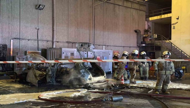 Şarja takılı halde bulunan elektrikli araç, henüz bilinmeyen bir nedenle alev alarak patladı. Aracın tamamen küle döndüğü olaya ilişkin yeni görüntüler ortaya çıktı.