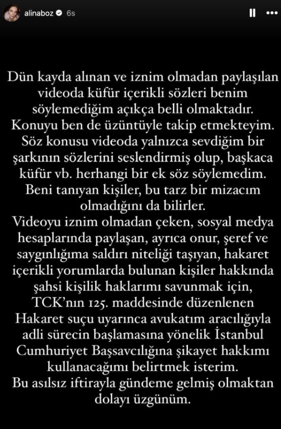 Söz konusu videoda yalnızca sevdiğim şarkının sözlerini seslendirmiş olup başka küfür vs herhangi bir ek söz söylemedim" açıklamasını yaptı.