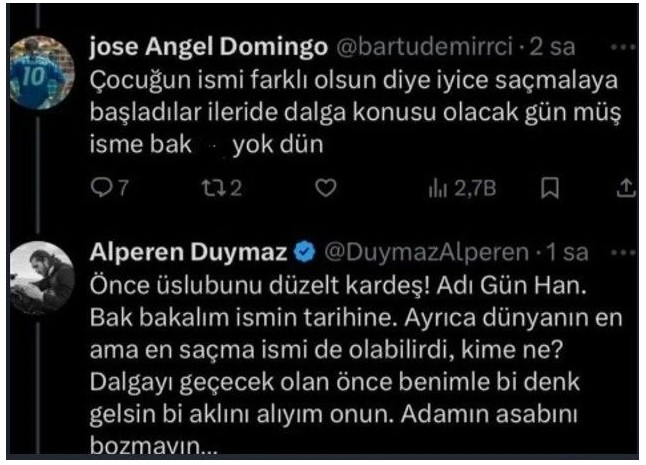 Alperen Duymaz, söz konusu yorumu yapan kullanıcıya şu cevabı verdi: