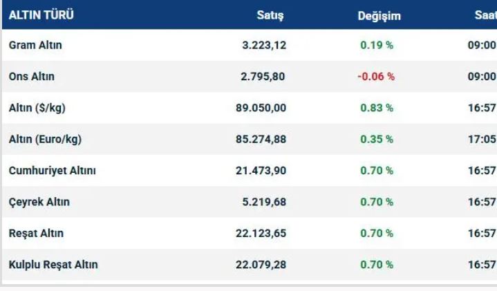Ons altının performansı gram tarafında da yükselişi getirdi. Gram altın 3 bin 223 TL ile rekor yeniledi. Çeyrek altın ise 5 bin 256 TL'ye çıktı.