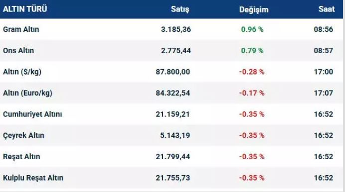 Gram altın, 3 bin 184 liraya kadar yükseldi. Çeyrek altın ise 5 bin 216 TL'den el değiştirdi.