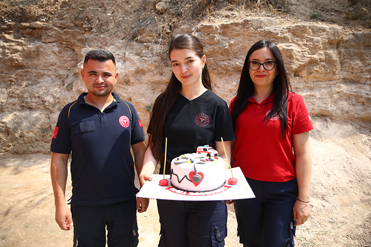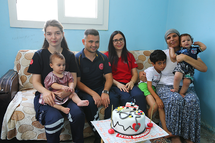 Mezitli 3 No'lu Acil Sağlık Hizmetleri İstasyonunda görevli ekip, araçta dünyaya gözlerini açmalarına şahit oldukları ikizlerin ilk doğum günlerinde yanlarında olabilmek için doğum günü kutlaması organize etti.