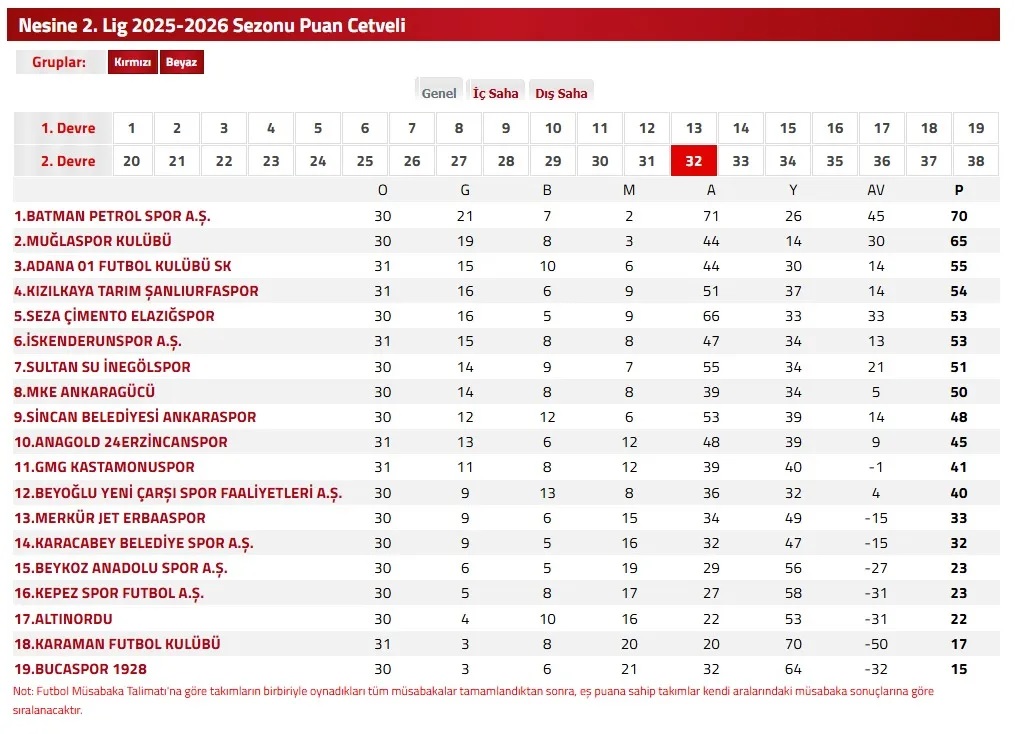 MKE Ankaragücü için kararın etkisi ağır oldu. TFF 2. Lig Beyaz Grup’ta play-off mücadelesi veren başkent temsilcisi, ceza sonrası 50 puandan 47 puana geriledi. Puan silme cezasıyla birlikte Ankaragücü’nün sıralamadaki yeri de değişti. 8. sıradan 9. sıraya gerileyen sarı-lacivertliler, play-off hattının dışında kaldı.