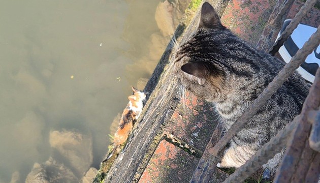 İhbar üzerine bölgeye sevk edilen itfaiye ekipleri, merdivenle çaya inerek yavruyu kurtardı. İtfaiye erleri, yarası veya sakatlığı olup olmadığını kontrol ettiği kediyi, kurulamalarının ardından doğal ortamına bıraktı.