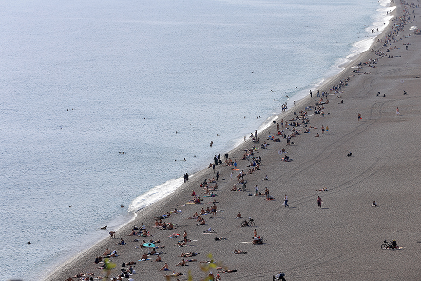 Yabancı turistler ve kent sakinleri, plajlardan denize girdi, kumsalda güneşlendi, bazıları da palmiye ağaçları altında yürüyüş yaptı, bisiklet sürdü.