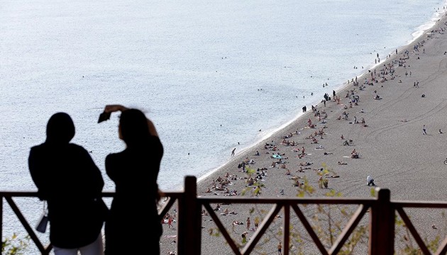 Güneşli ve sıcak havayı fırsata dönüştürenler Konyaaltı Sahili'nde hareketliliğe neden oldu.