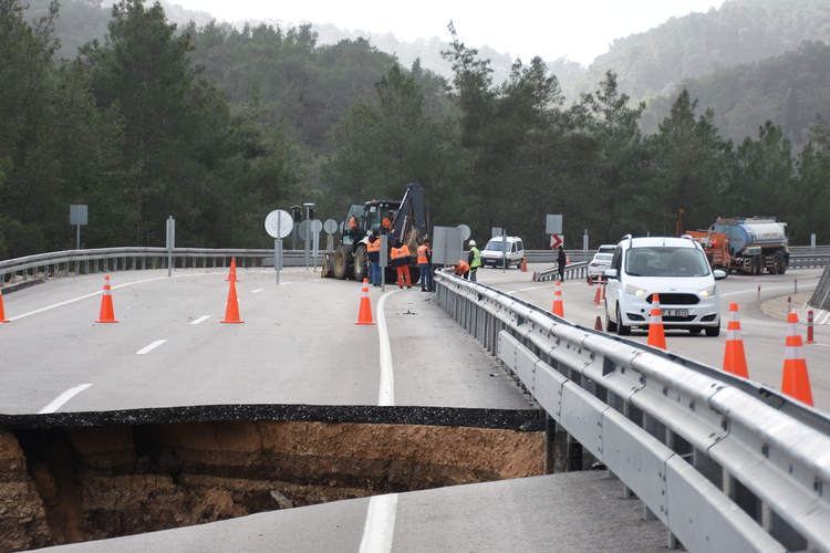Kemer ile Kumluca ilçelerini birbirine bağlayan kara yolunda göçük ve heyelan meydana geldi. Yolda oluşan yaklaşık 10 metrelik çukur nedeniyle bölgede ulaşım tek şeritten sağlanıyor.
