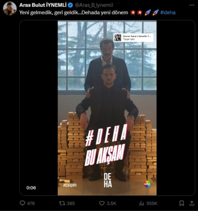 İynemli, Instagram hesabından "Canım benim" notu ile Ahsen Eroğlu'na veda paylaşımı yaptı. Ünlü oyuncu daha sonra ise X hesabından yaptığı bir diğer paylaşımla tepkileri üzerine çekti. İynemli, "Yeni gelmedik, geri geldik… Deha'da yeni dönem" ifadelerini kullanınca dizinin sevenlerinden eleştiri aldı.