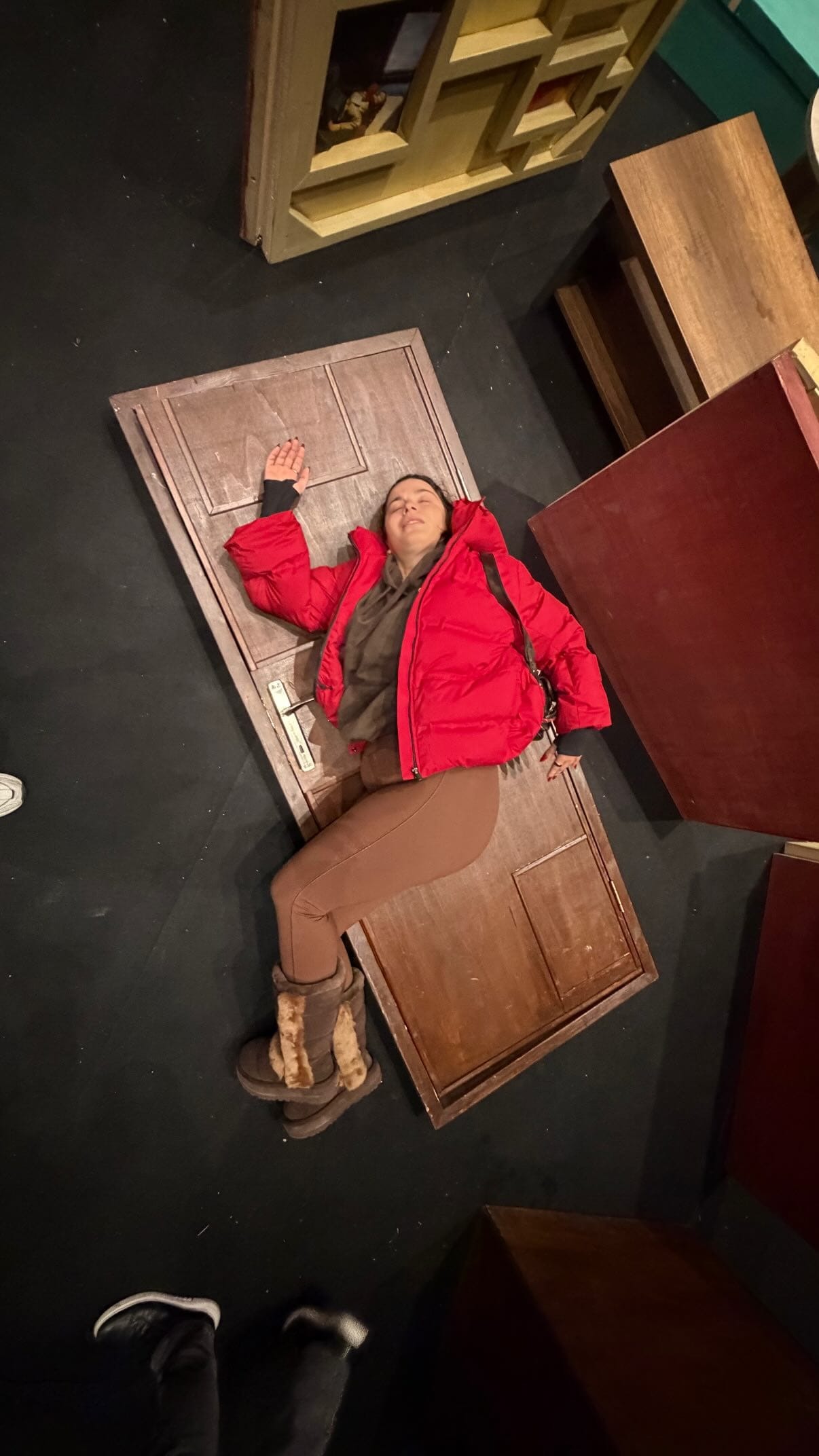 Oyun sırasında, sahnede dekor olarak kullanılan bir kapı ünlü oyuncunun kafasına düştü.