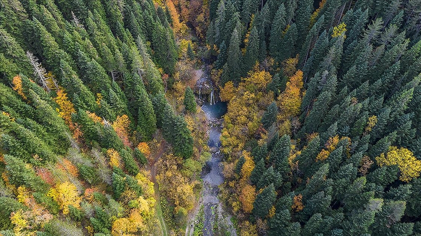 Şelale ve çevresindeki sonbahar renkleri havadan görüntülendi.