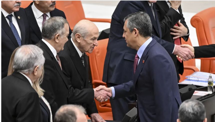 Görüşmeleri AK Parti Grup Başkanı Abdullah Güler, AK Parti Genel Başkanvekili Efkan Ala, CHP Genel Başkanı Özgür Özel, MHP Genel Başkanı Devlet Bahçeli, DEM Parti Eş Genel Başkanı Tuncer Bakırhan, İYİ Parti Genel Başkanı Müsavat Dervişoğlu da izliyor.