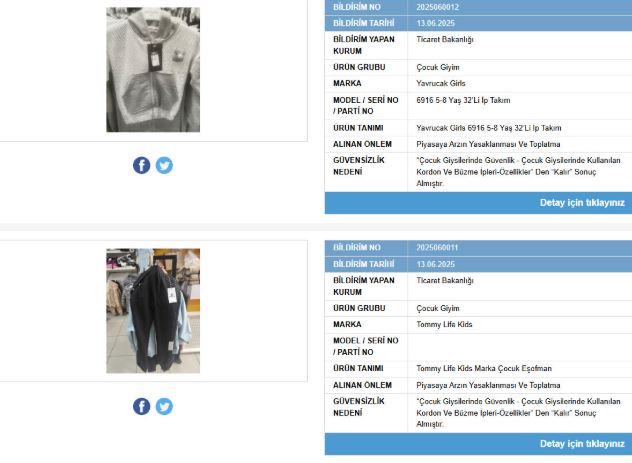 Bakanlık son duyurusunu 13 Haziran tarihinde yaptı. 3 çocuk ürününü daha ifşa eden bakanlık, piyasadan toplatılmasına karar verdi.