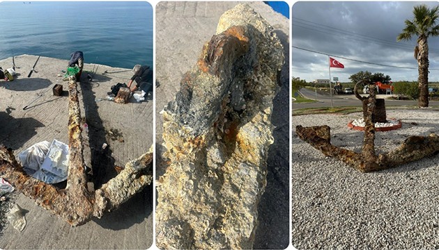 Oruçoğlu, büyük bir gemiye ait olduğunu düşündükleri bu çapanın yıllardır denizde kaldığını, şimdiki yerinin beldenin döner kavşağı olduğunu ifade etti.
