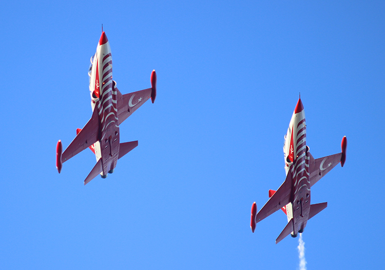 Pilotlar, zaman zaman telsiz aracılığıyla vatandaşlara seslenerek coşkulu kalabalığa selam gönderdi.