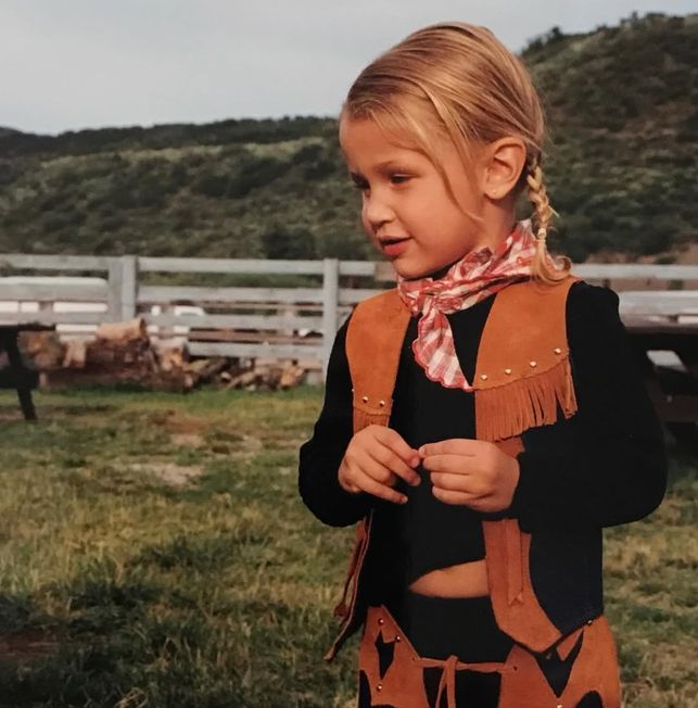 "Bugün içimdeki küçük 'bebek Bells'i ve onun o meşhur dinlenme yüz ifadesini (RBF) düşündüm. Bugün ona kocaman sarıldım. O, her zaman en mutlu ve en çok gülümseyen çocuktu. Ama kameradan nefret ederdi. Peki bu konuda bir şey değişti mi? (Kaydırın, istisnayı görün… Görünüşe göre sadece binici kıyafetlerimle ya da ablam yanımdayken poz veriyorum!)