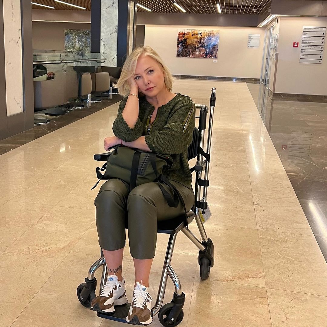 Hastaneden çekildiği fotoğraflarını paylaşan Berna Laçin, acil olarak ameliyata alındığını duyurdu.