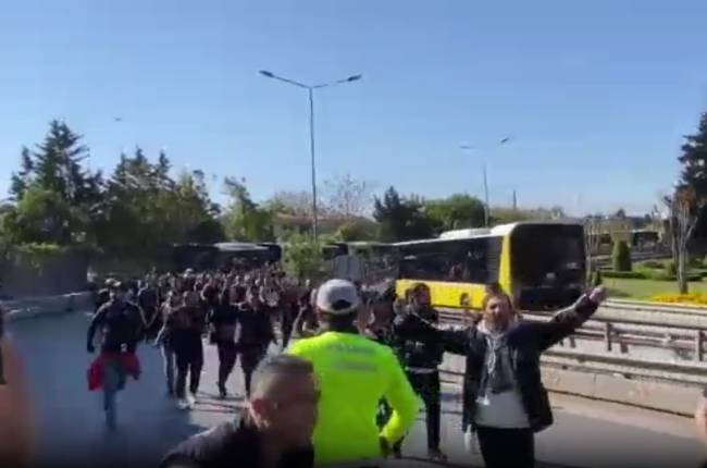 Yaklaşık 2 bin 100 Beşiktaşlı taraftarlar, güvenlik önlemleri altında 30 otobüs ile beraber maçın oynanacağı stadyuma ulaştı.