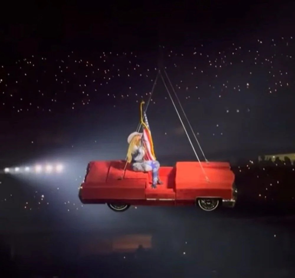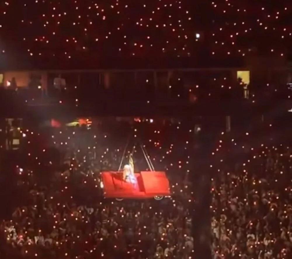 Sahne şovlarıyla bilinen Beyonce, sahneye uçan araba ile çıktı. Bindiği arabanın arızalanması paniğe neden oldu.