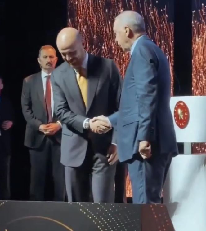 Ödül törenine katılan ve kısa bir konuşma da yapan Cumhurbaşkanı Erdoğan, ardından da Bilal Erdoğan'ı tebrik etti.