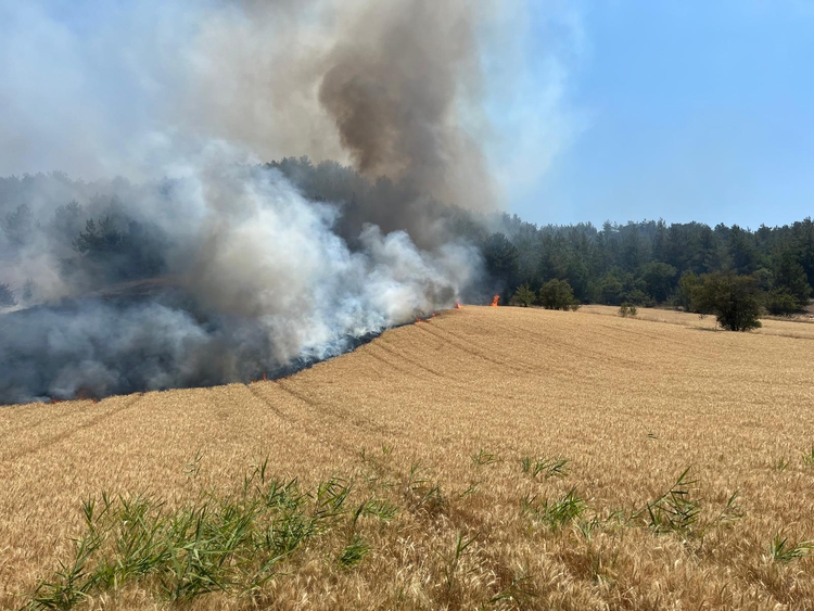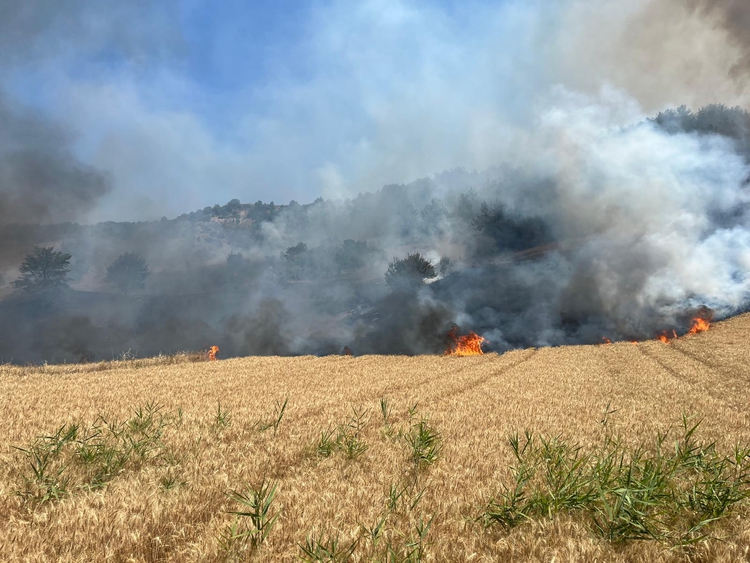 Alevler, tarlanın yakınlarındaki ormanlık alana sıçradı.