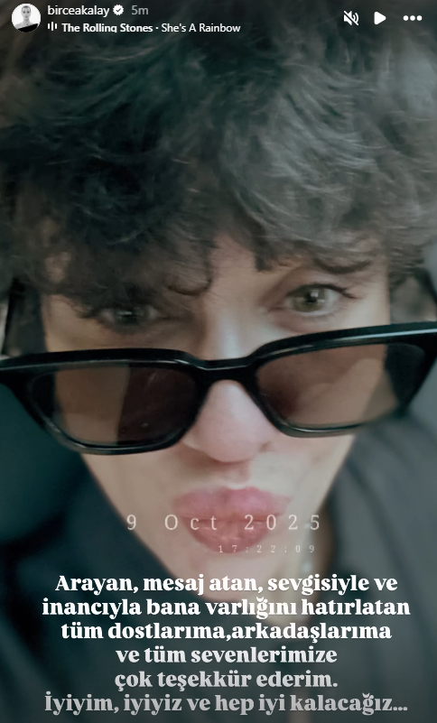 "Arayan, mesaj atan, sevgisiyle ve inancıyla bana varlığını hatırlatan tüm dostlarıma, arkadaşlarıma ve tüm sevenlerimize çok teşekkür ederim. İyiyim, iyiyiz ve hep iyi kalacağız..."