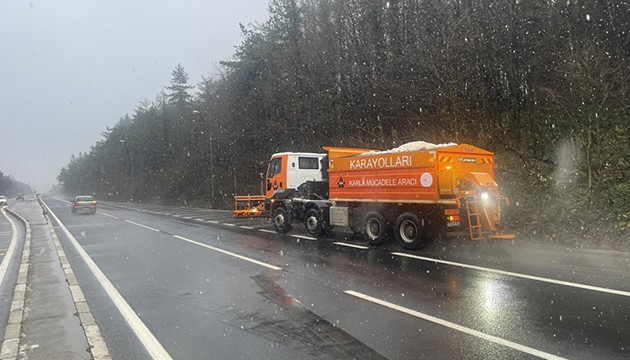 Karayolları ve trafik ekipleri, sürücüleri güzergahta etkili olan kar yağışına karşı dikkatli seyretmeleri konusunda uyardı.