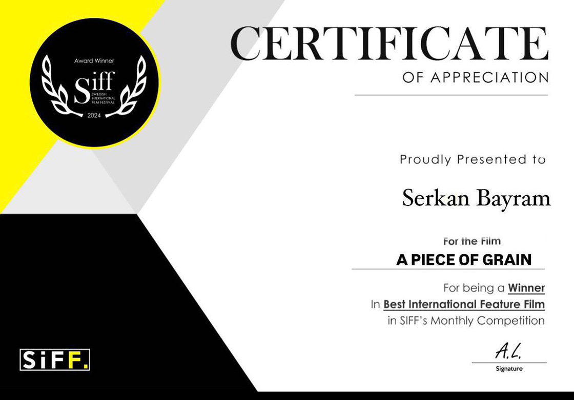 Buğday tarlasında çıkan yangında vücudunun büyük bölümünde kalıcı yanıklar oluşan ve ellerini kaybeden AK Parti İstanbul Milletvekili Serkan Bayram'ın hayatını konu alan "Buğday Tanesi" filmi, İsveç'te düzenlenen festivalde 128 ülke ve 1170 film arasından birinci oldu.
