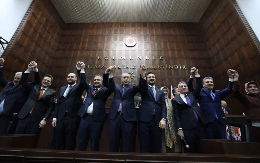 AK Parti Grup Toplantısı'nda yaptığı konuşmada dikkat çeken ifadeler kullanan Cumhurbaşkanı Recep Tayyip Erdoğan, daha sonra partisine yeni katılan üç milletvekiline parti rozetlerini taktı.