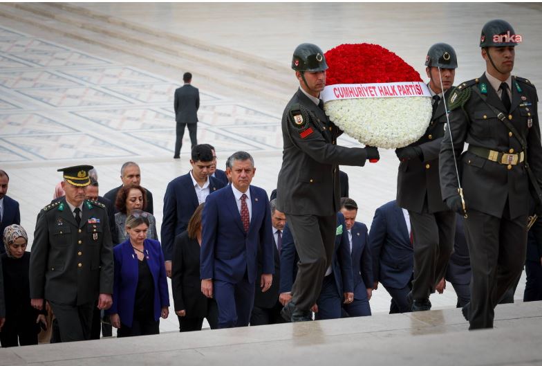 Atatürk'ün mozolesine kırmızı ve beyaz çiçeklerden oluşan ve üzerinde "Cumhuriyet Halk Partisi" yazan çelengin bırakılması ve saygı duruşunun ardından Özel'in başkanlığındaki heyet, Misak-ı Milli Kulesi'ne geçti.