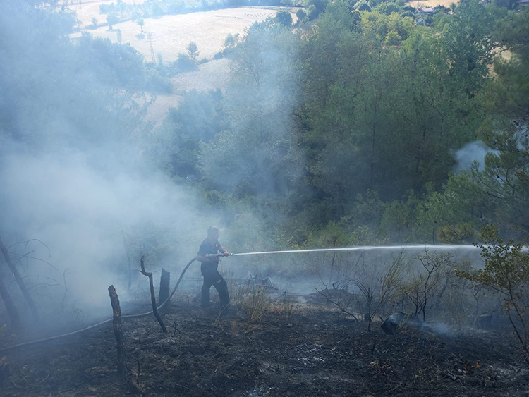 İlçeye bağlı Tayfur köyü yakınlarındaki ormanlık alanda henüz belirlenemeyen bir nedenle yangın çıktı.