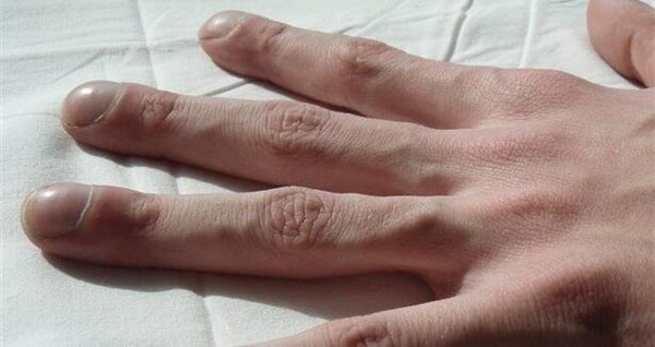 Tırnaklar ve çevresindeki deri parlak bir görünüm kazanır ve tırnak yüzeyinde tüm uzunluğu boyunca çıkıntılar oluşur. Cancer Research UK’ye göre, “Parmak uçları genişleyerek sopa benzeri bir görünüm alır” ifadesiyle tanımlanan bu durum, Hippocratis digital (çomak parmak) tipik belirtilerindendir.