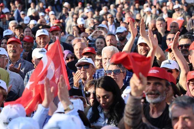"Bu meydan milletin meydanı, bu meydan başkaldıranın, isyanın meydanı. Biz Cumhuriyet Halk Partililer babamızın tarlasını korumak için değil; geçinemeyen emekliler için, mülakatta elenip intihar eden gençler için, staj ve çıraklık mağdurları için, hukuksuzca işten atılan KHK mağdurları için, kirayı ödeyemeyenler, hakkı verilmeyen çiftçiler için buradayız. Ve elbette Ekrem İmamoğlu için buradayız."
