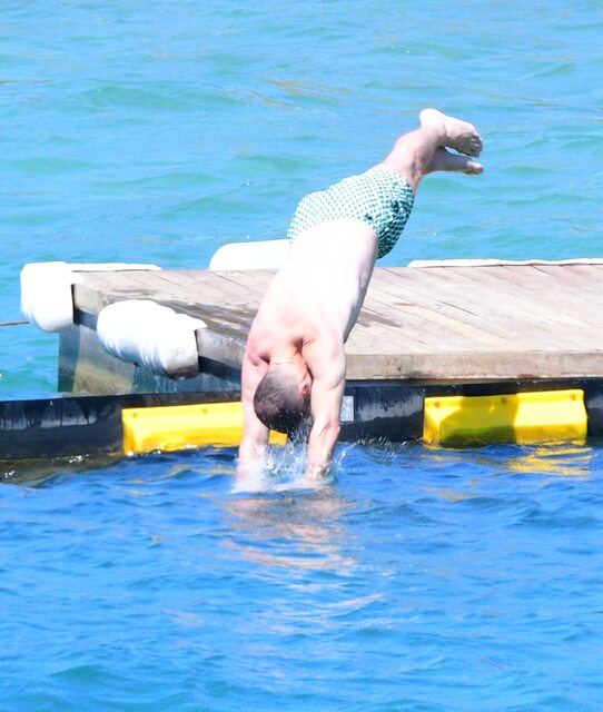 Bir süre sonra Oğulcan Engin de iskeleden denize atlayarak sevgilisine eşlik etti.