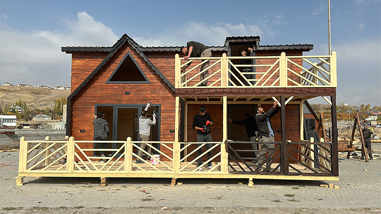 Bursa'da 10 yıl boyunca ahşap ev imalatı yapan bir iş yerinde çalışan Erhan (29) ve Veysel Durmaz (25) kardeşler, memleketleri Erciş'te yatırım yapmaya karar verdi.
