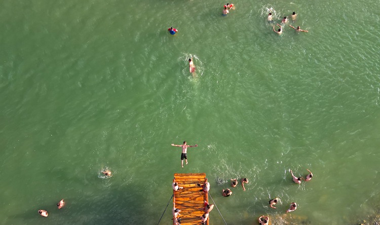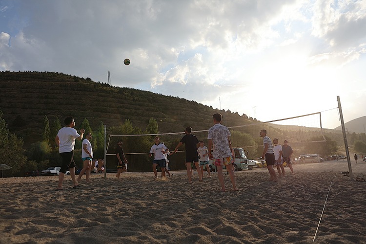 Denizi olmayan kentte adeta sahile dönüştürülen alana akın eden vatandaşlar, Çoruh Nehri'nin serin sularında yüzerek, şezlonglarda güneşlenmenin, plaj voleybolu oynamanın, güneşin ve kumun keyfini çıkarıyor.