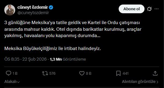 Ailesiyle birlikte üç günlük tatil için bölgede bulunan Özdemir, otelden ayrılmak üzereyken gelen "dışarı çıkmayın" talimatıyla mahsur kaldıklarını belirtti. Sosyal medya üzerinden yaptığı paylaşımda, otel çevresinde barikatlar kurulduğunu, araçların yakıldığını ve havaalanı yolunun kapandığını ifade eden gazeteci, Türkiye’nin Meksika Büyükelçiliği ile sürekli irtibat halinde olduklarını bildirdi.