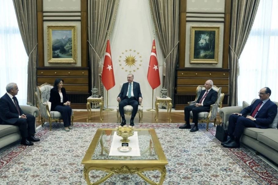 DEM Parti'nin İmralı heyeti, Cumhurbaşkanı Erdoğan'ı ziyaret etti. Görüşme, Beştepe'deki Cumhurbaşkanlığı Külliyesi'nde gerçekleşti.