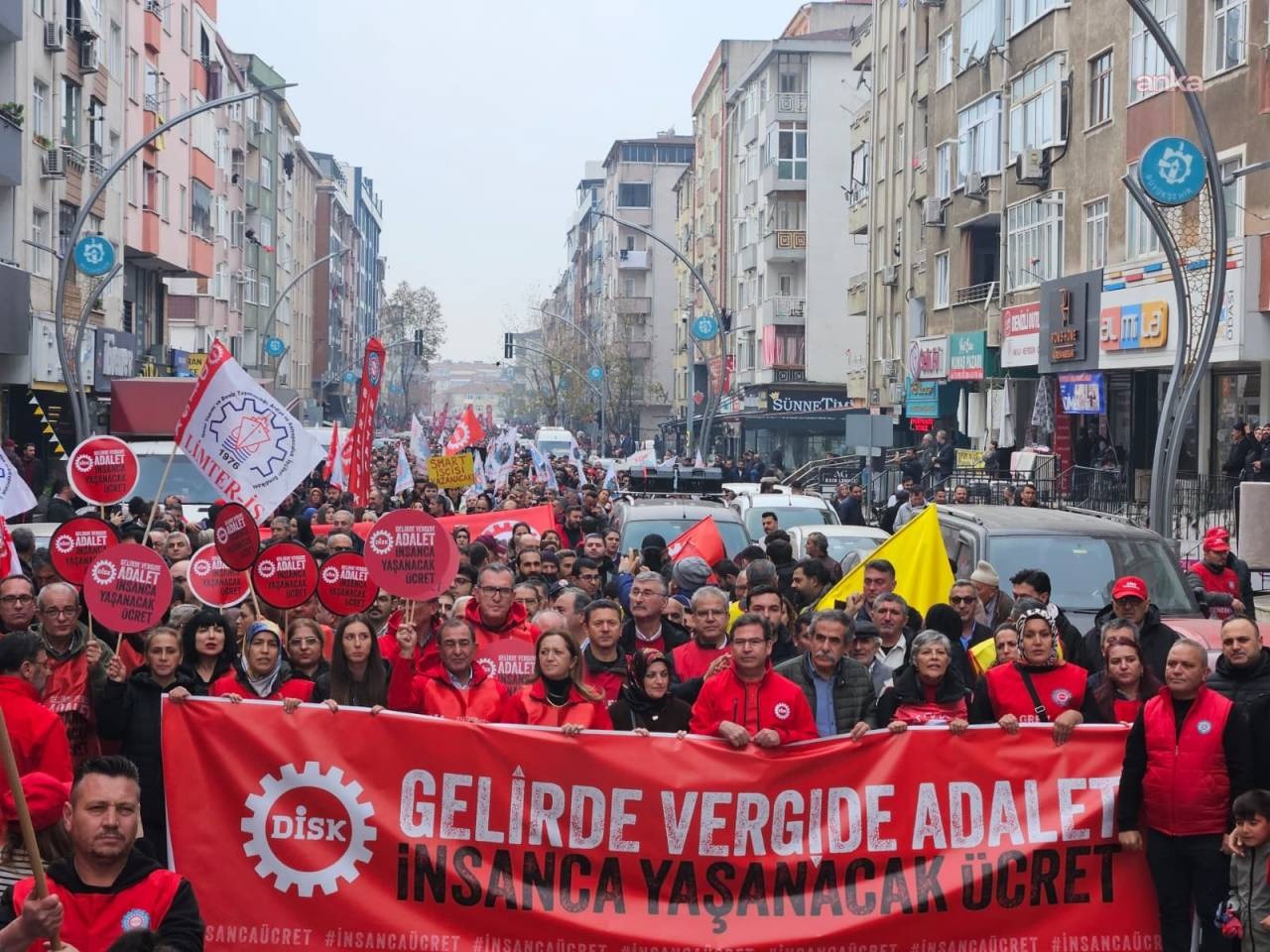 Türkiye Devrimci İşçi Sendikaları Konfederasyonu (DİSK) “Gelirde, vergide adalet, insanca yaşanılacak ücret” talebiyle İstanbul Kartal'dan Ankara’ya doğru yola çıktı.